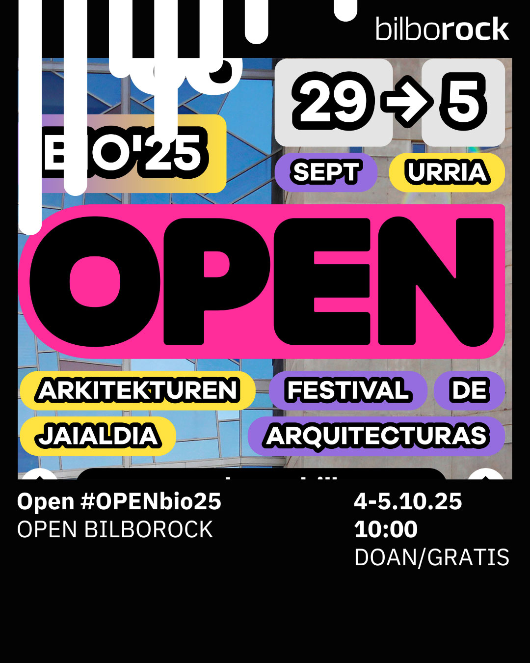OPEN Bilboko Arkitektura Jaialdia da, non hiriko eraikin eta espazio adierazgarrienak ezagutu ahal izango dituzun. Udazkenero, 7 egunez, programak Bilboko arkitektura bere ondare arkitektonikoaren bitartez ezagutzera gonbidatzen du eta arkitektura ulertzeko eta egiteko modu berriak ikusarazten ditu.
