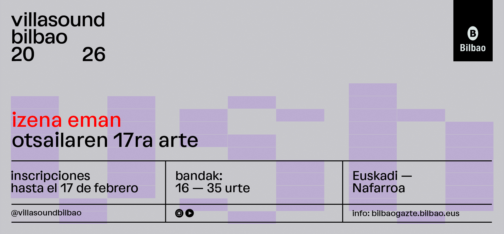 BANDAS Y SOLISTAS JÓVENES YA PUEDEN INSCRIBIRSE EN LA VI EDICIÓN DEL VILLASOUNDBILBAO